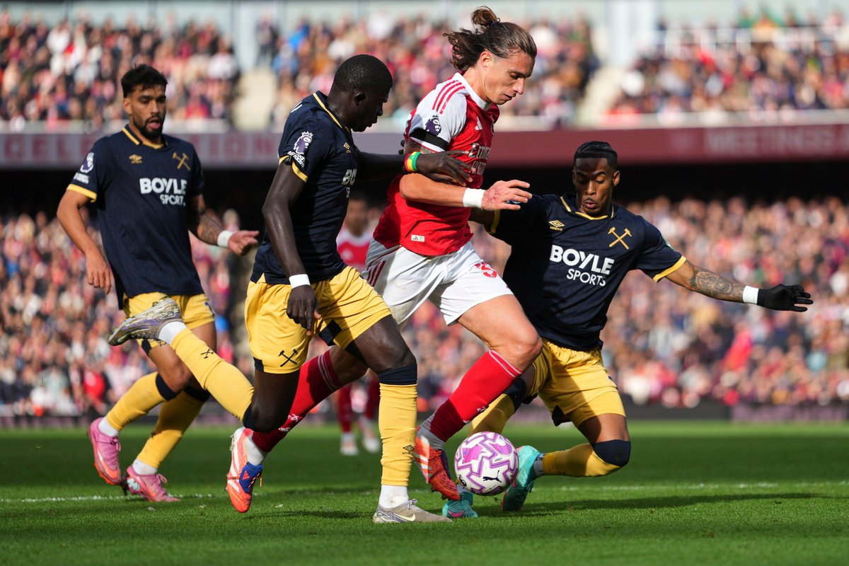 Kalıcı baskı nihayet 38. dakikada, eski Hammer Declan Rice’ın Areola’nın Eze’nin atışından parry’sine atladığı ve Arsenal’e hak ettiği bir liderlik etmek için evi çarptığı zaman ödedi. Riccardo Calafiori, Arsenal daha fazlasını ararken yarıdan önce göreve çarptı.