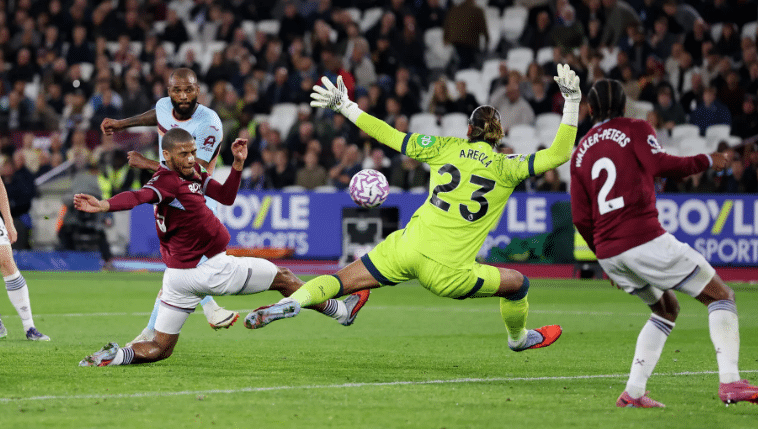 Arılar baskı yapmaya devam etti ve Alphonse Areola, Mikkel Damsgaard ve Thiago’yu arka arkaya hızlı bir şekilde reddetmek zorunda kaldı. Atılım 43. dakikada Hammers’ın savunmasını bölen bir pasla gerçekleşti ve Thiago, Areola’nın dokunuşuna rağmen topu gizlice çizginin üzerinden geçirebildi. Brezilyalı oyuncu daha sonra farkı ikiye katladığını düşündü ancak az farkla ofsayt bayrağıyla cezalandırıldı.