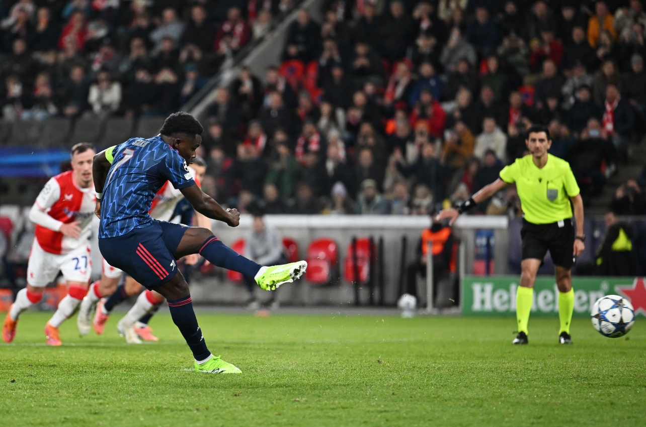 Slavia yoğun bir şekilde başladı ancak Arsenal, Gabriel Magalhão’nun erkenden yaklaşmasıyla ve Bukayo Saka’nın Jakub Markovič’i iki kez test etmesiyle sakinleşti. 30. dakikada Saka, Gabriel’in kafa vuruşunun Lukáš Provod’un eline çarpmasının ardından penaltıyı çevirdi – VAR tarafından onaylandı.