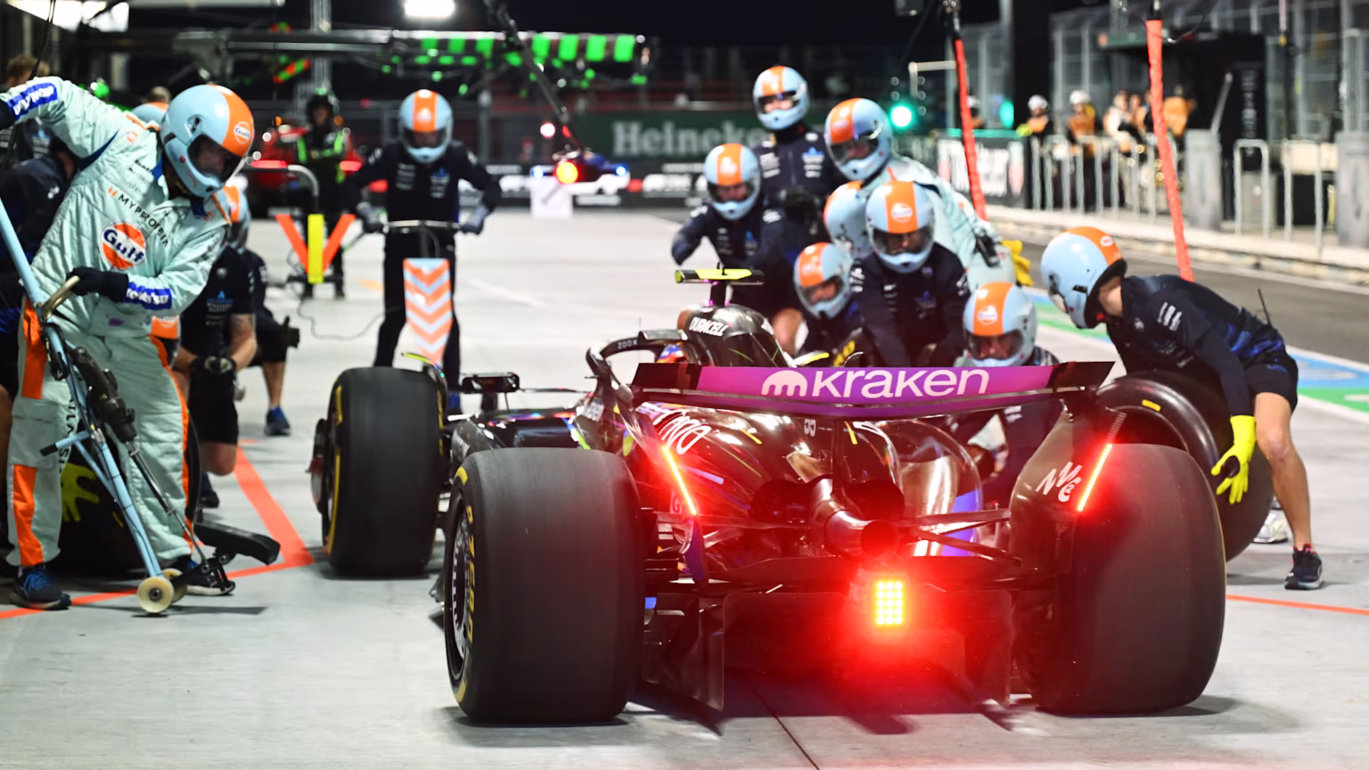 Las Vegas’ta şiddetli yağmurun yağdığı çılgın bir gecede, en iyi eli oynayan kişi Lando Norris oldu ve sezonun yedinci pole pozisyonunu Max Verstappen ve Carlos Sainz’ın önünde aldı. Peki strateji açısından yarış günü kartlarında neler var? Gelin seçeneklere bir göz atalım…
