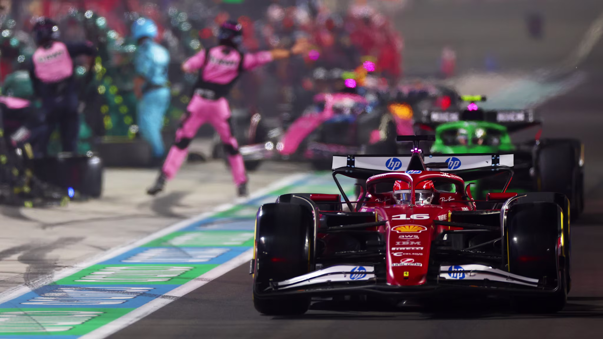 LUSAIL CITY, QATAR – NOVEMBER 30: Sparks fly behind Charles Leclerc of Monaco driving the (16) Scuderia Ferrari SF-25 on track during the F1 Grand Prix of Qatar at Lusail International Circuit on November 30, 2025 in Lusail City, Qatar. (Photo by Clive Rose – Formula 1/Formula 1 via Getty Images)
