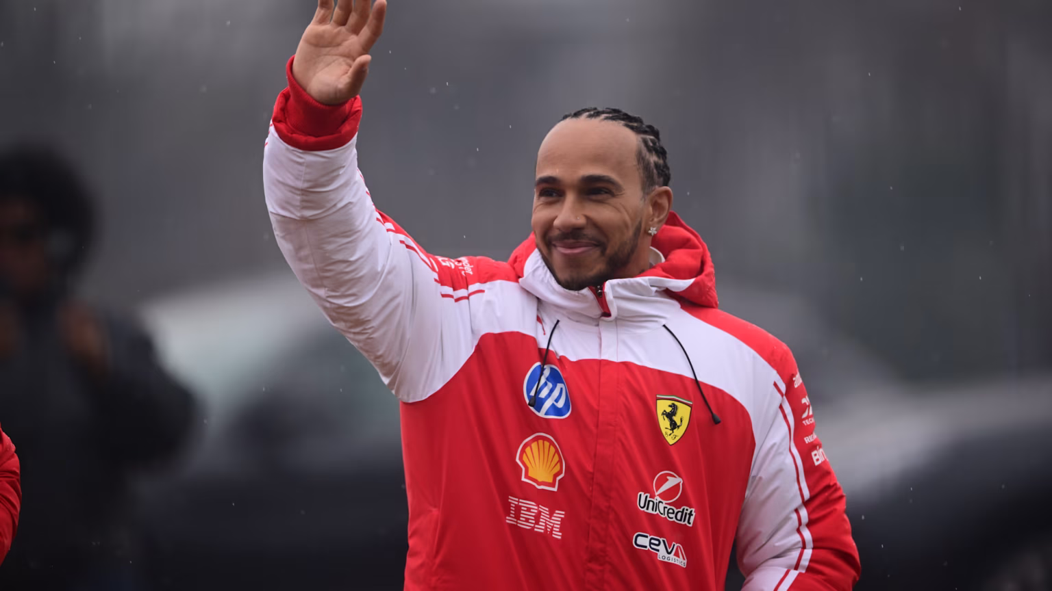 Ferrari'nin İngiliz sürücüsü Lewis Hamilton (solda) ve Ferrari'nin Monegasque sürücüsü Charles Leclerc el sallıyorHamilton ve Charles Leclerc, Fiorano’da taraftarlara el salladı